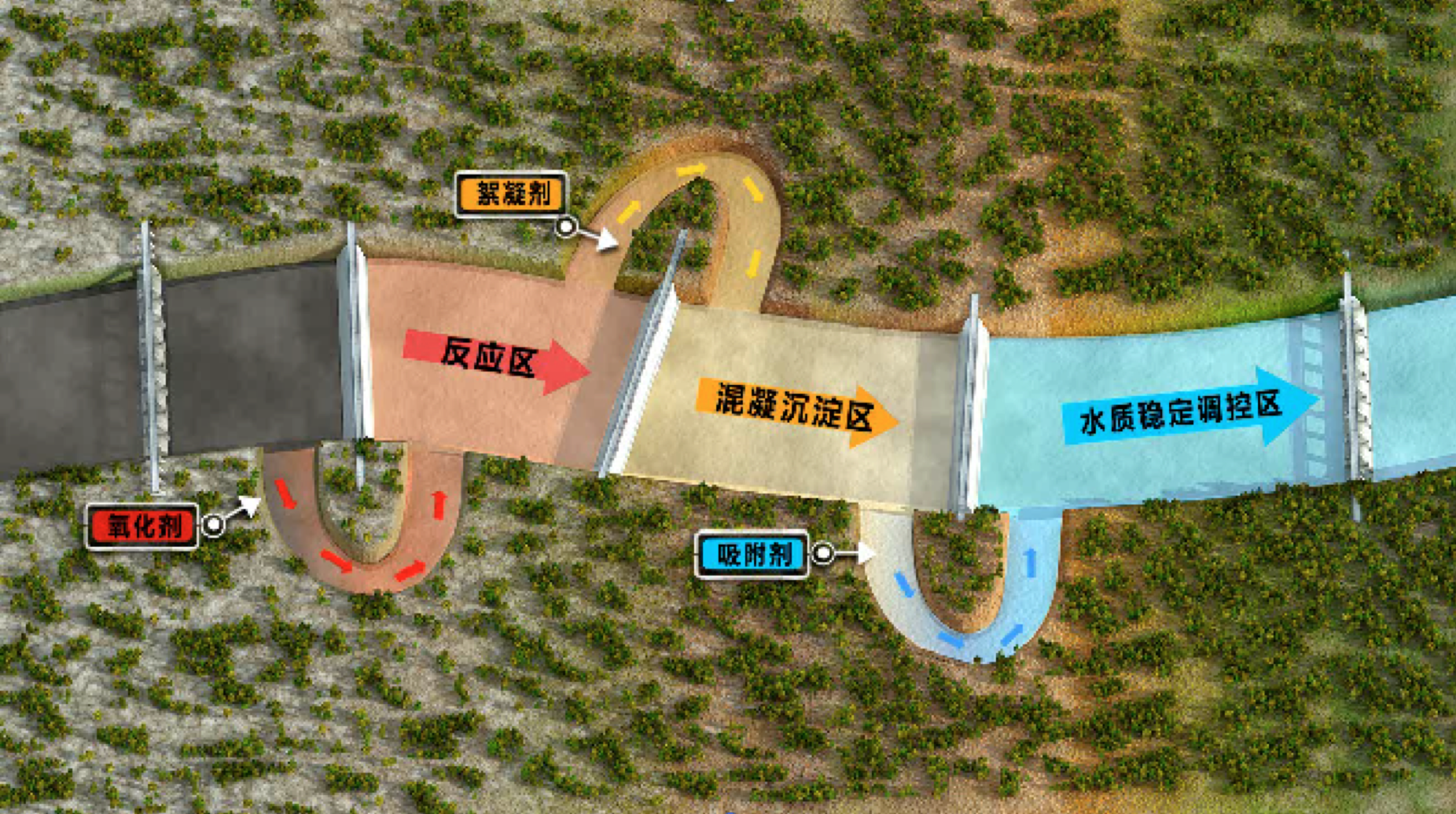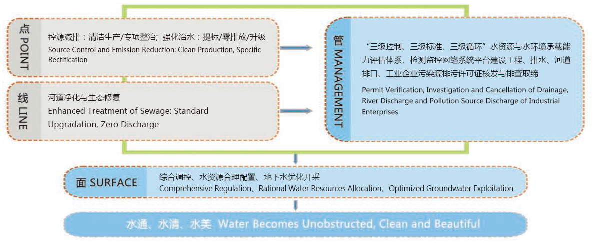 中心在微污染水净化领域,构建了“点-线-管-面”治理模式,实现断面水环境功能区达标,保障流域水质健康安全。基于基于水质目标标准与生态健康恢复的“三级控制、三级标准、三级循环”的“三三三”治理模式,研发了一体化装备高效集成技术和原位河道反应器技术。